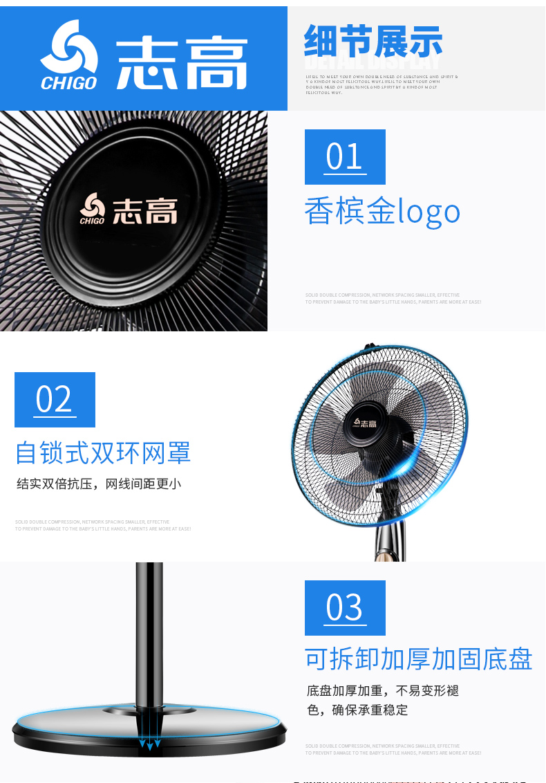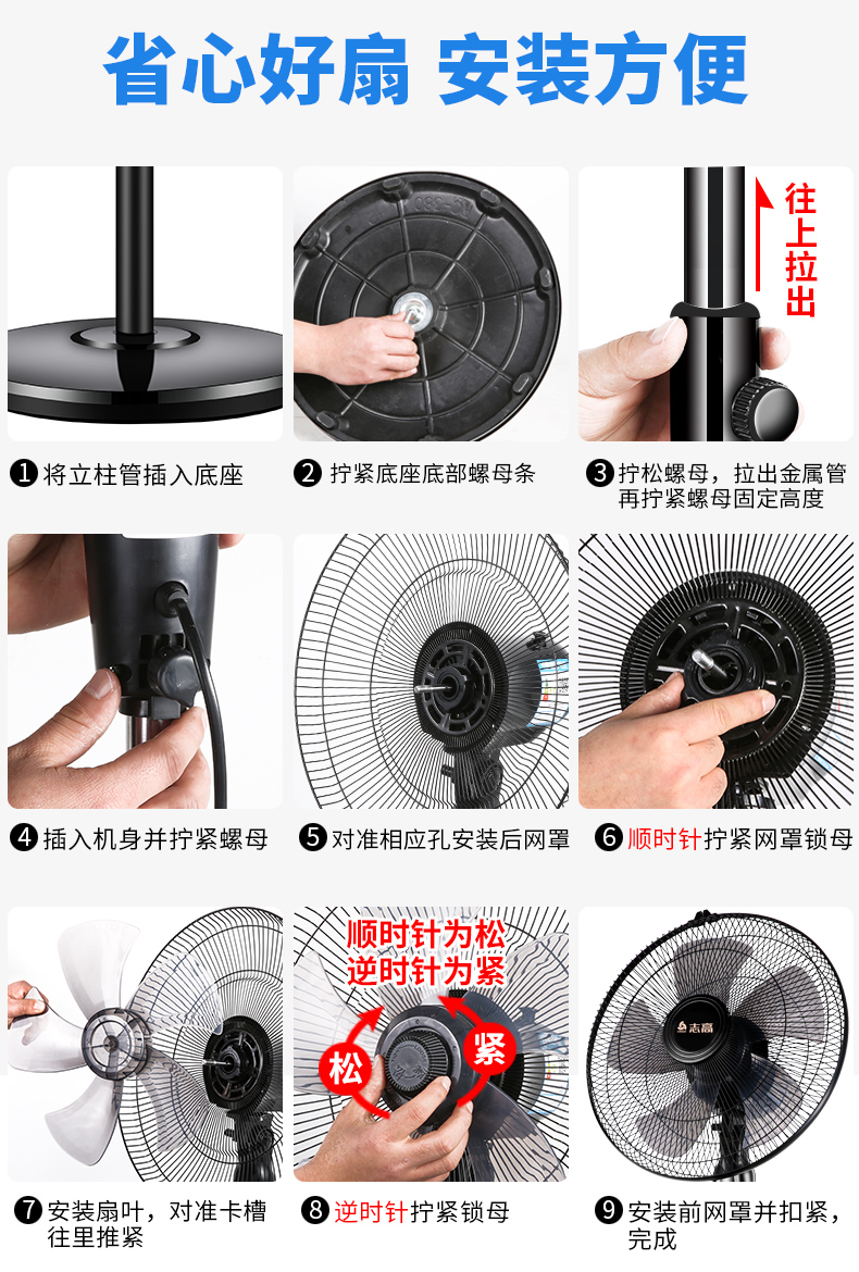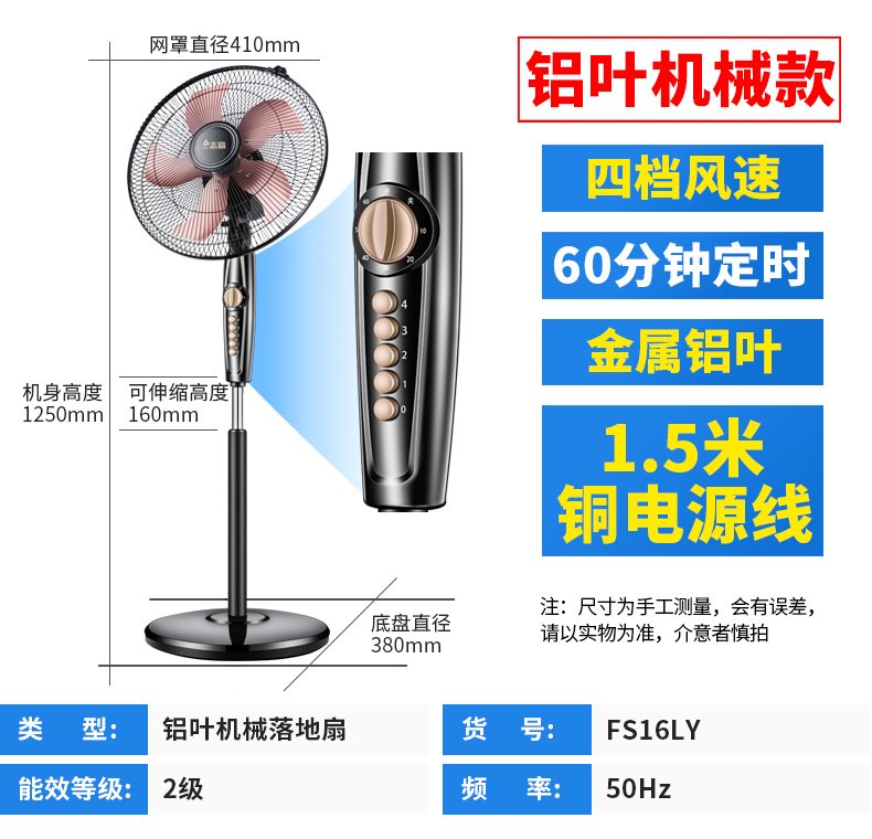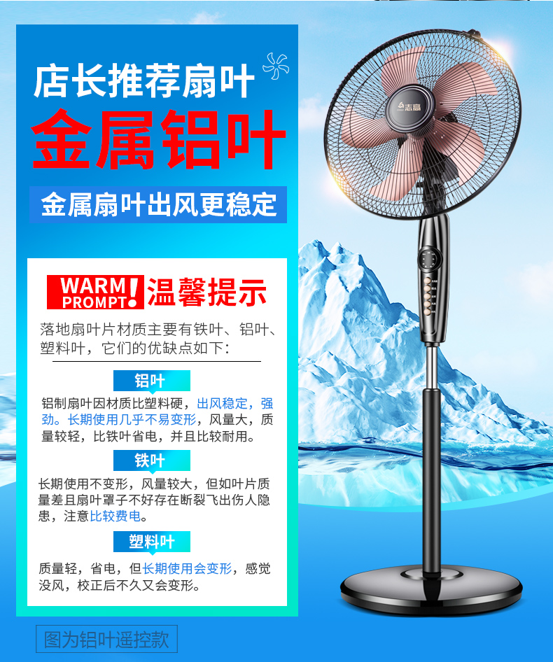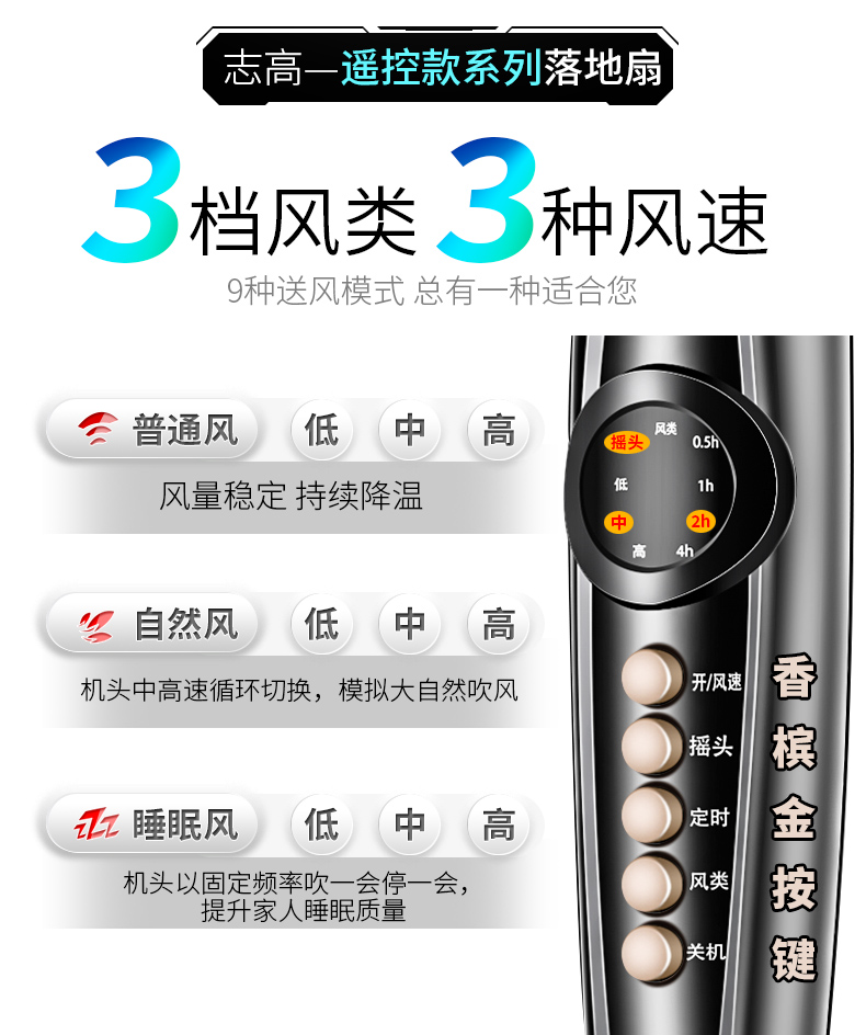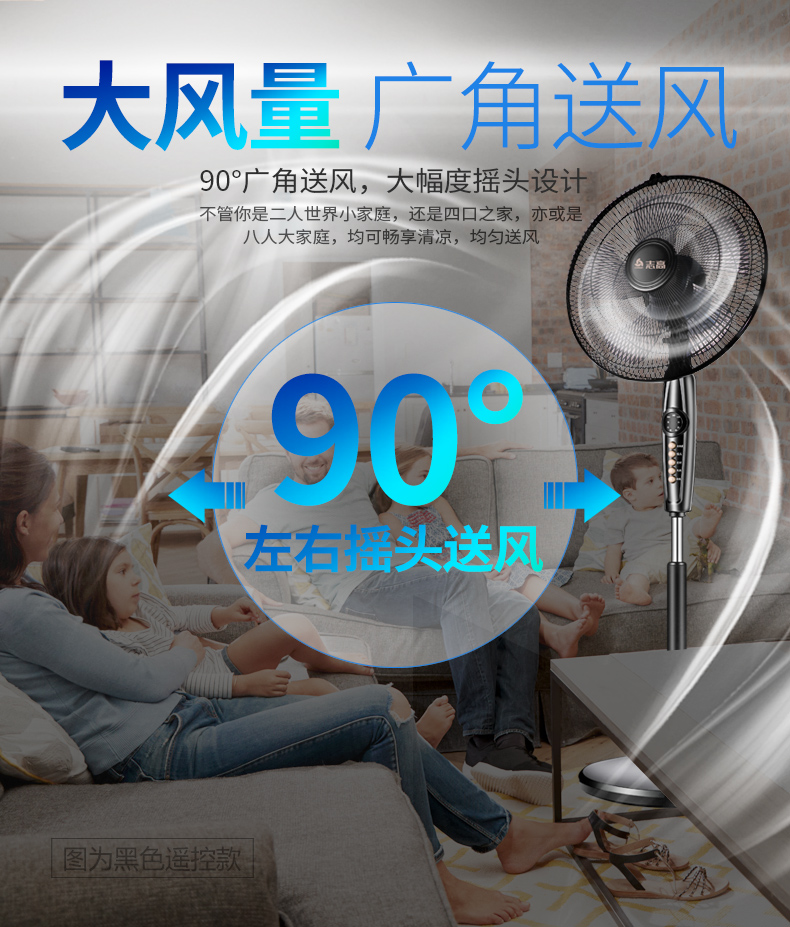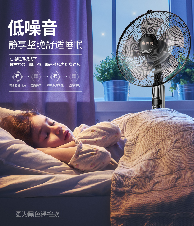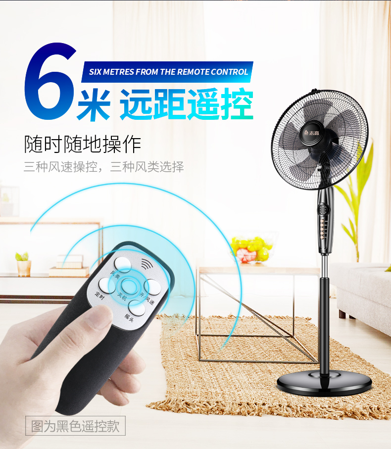 志高家用机械遥控定时静音落地扇